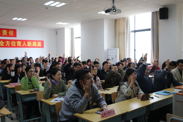 ok138cn太阳集团古天乐党委应到具有表决权的正式党员106名,除10人因病因事请假的党员外,其他96名正式党员参加了会议,出席率达到90.57%。大会依次通过了选举办法、监票人、计票人以及15名代表候选人预备人选名单等;杨书记详细传达了学校党委分配给学院党委的代表名额和结构要求,并向与会代表讲解了填写选票注意事项,96位具有表决权的正式党员严格按照选举办法,认真填写选票,投上了自己庄严的一票。