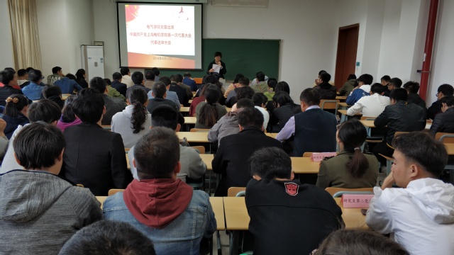 4月13日下午12点30分,ok138cn太阳集团古天乐党委在电气楼301举行出席学校第一次党代会代表选举大会。选举大会由学院党委书记杨幼君主持,学院组织委员崔雪作为总监票人,全院师生党员参加了选举大会。