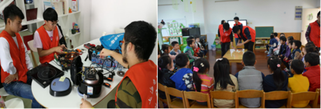 科普志愿者在社区开展家电维修 科普小实验走进幼儿园