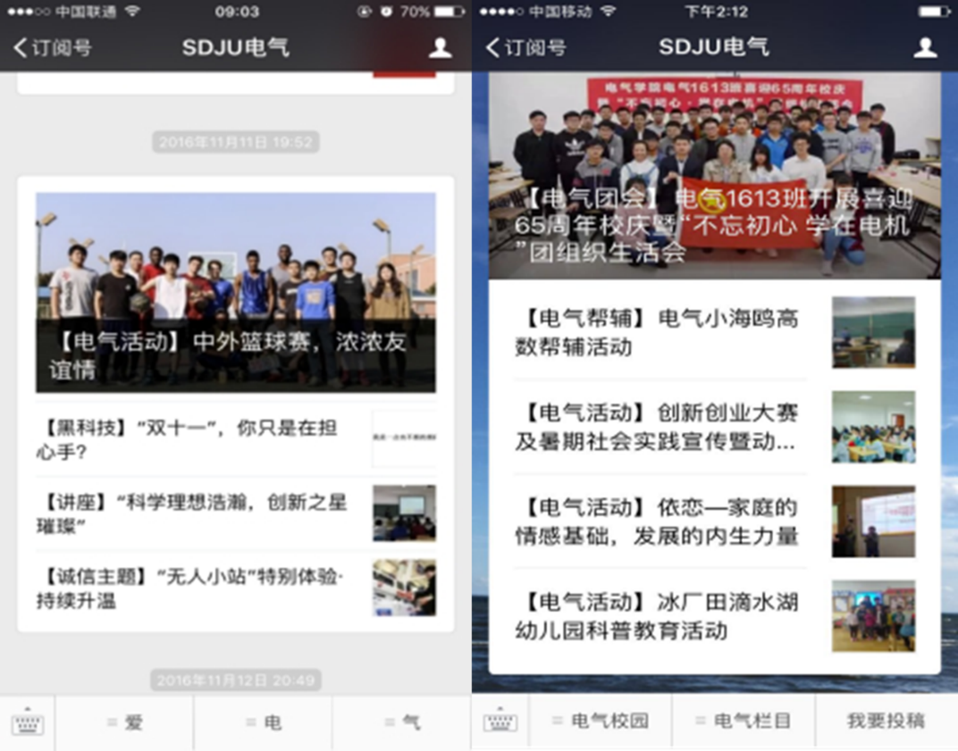 学院不断加强和改进互联网管理,以“建立融思想性、知识性、趣味性、服务性”为宗旨的理念不断完善学院网站与易班建设。同时以学院官方微信为渠道,通过合理设置各项服务小贴士,实时发布校园新闻及学院活动,每周定期推送社团活动预告及各类比赛信息,有效拉近了师生距离。2017年,学院微信粉丝数量2630,累计发布图文微信376次。其中,6次单条图文消息阅读量过500的记录,80次阅读量200以上。通过各种渠道鼓励学生利用所知所学,正面发声、理性思辨,传播网络正能量,营造风清气正的网络生态。