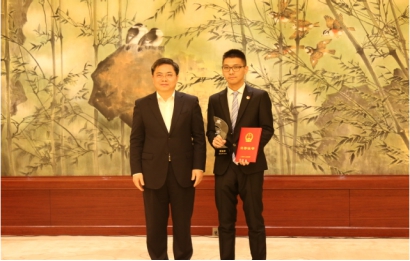 上海市政府秘书长肖贵玉为贾继祥颁奖