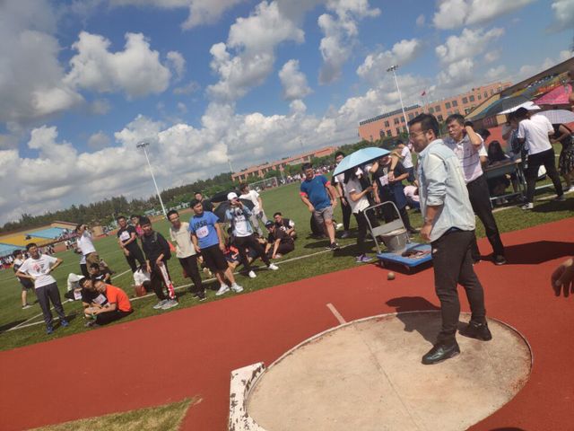 9月28日上午,在学校临港校区田径场,第38届学生运动会暨第23届教工运动会隆重举行。我院教职工踊跃报名参加教工组比赛。经过一天的激烈角逐,我院教师李全峰获得教工组铅球比赛季军。(文/蓝媛媛 图/李全峰)