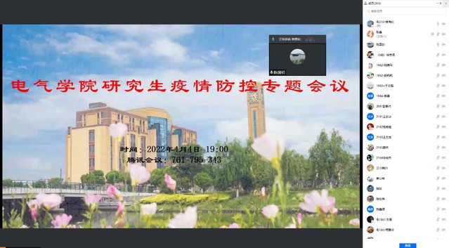 会议上,学院院长陈国初首先就目前学校学院防控形势进行了详细的分析介绍。为加快阻断疫情传播链,早日实现社会面清零,上海正全力开展核酸检测,目前正是疫情防控的关键时期。学校是人员密集的重点场所,一旦破防可能带来疫情传播的巨大风险,只有不断织牢织密校园疫情防控网,才能确保校园和师生安全。陈院长表示,希望全体研究生统一思想,提高认识,务必严格落实执行学校出台的疫情防控措施,全校同心,一定能共克时艰,赢得胜利。