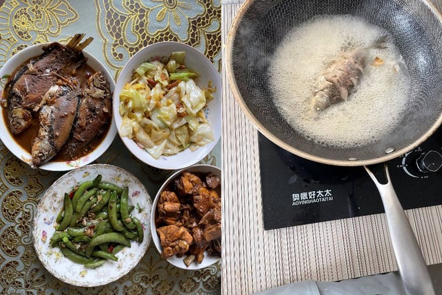 今天的饭菜基本都合妈妈口味,唯有一道鱼汤翻车了,鱼早晨被腌制过,而我留了一条烧鱼汤,在我不知道它被提前腌制的情况下,后期又多加了一点儿盐,导致汤过于咸,无法下口。