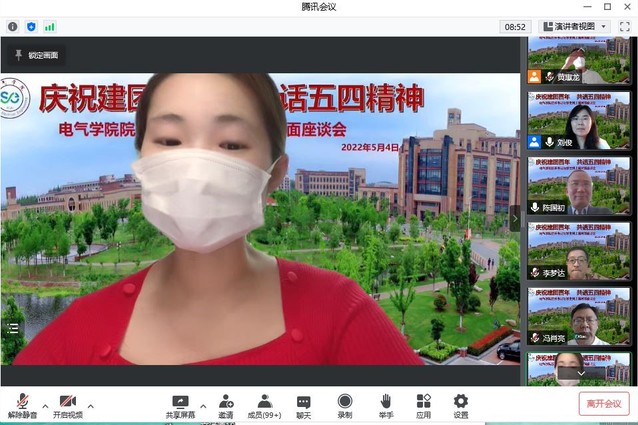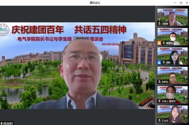 为了激励和引导广大团员青年把握五四精神,进一步弘扬“爱国、进步、民主、科学”的五四精神,增强广大团员青年的社会责任感与历史使命感。54日下午,ok138cn太阳集团古天乐党委书记刘俊、院长陈国初以及其他党委委员、辅导员代表线上共约青年团员,齐聚一堂,畅聊青年成长,共话五四精神,座谈会由电2163班周思洁主持。