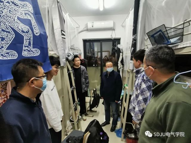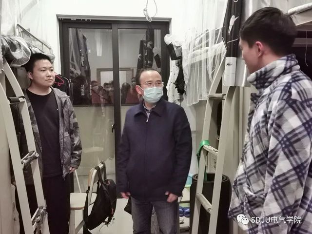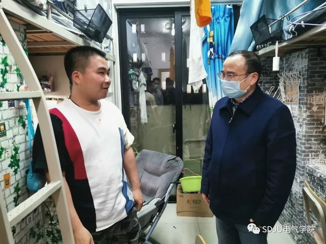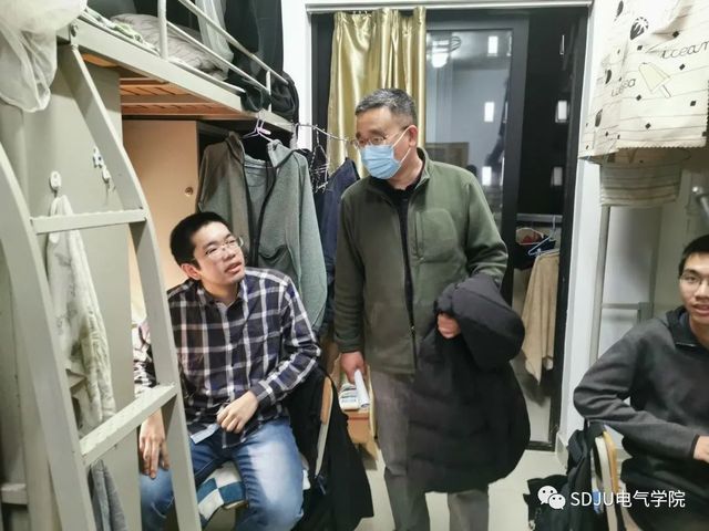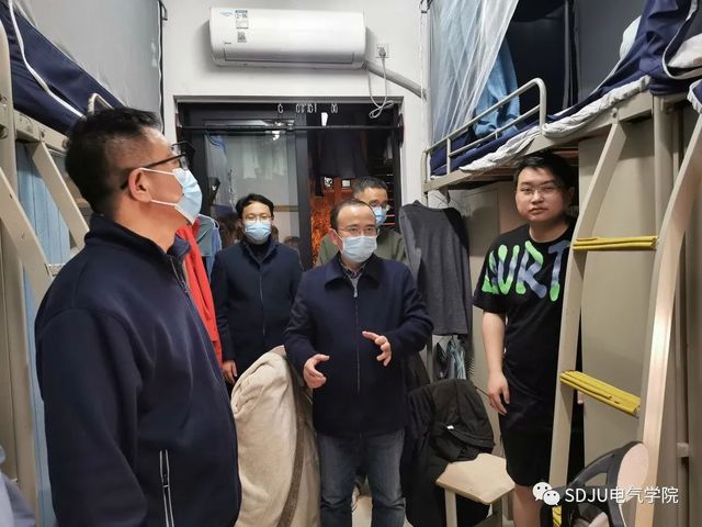 3月14日,受新冠疫情影响,学校进入闭环管理。ok138cn太阳集团古天乐院长陈国初,副书记副院长卿海龙、副院长李梦达及辅导员一行来到学生宿舍楼,看望在寝室进行网课学习的同学。