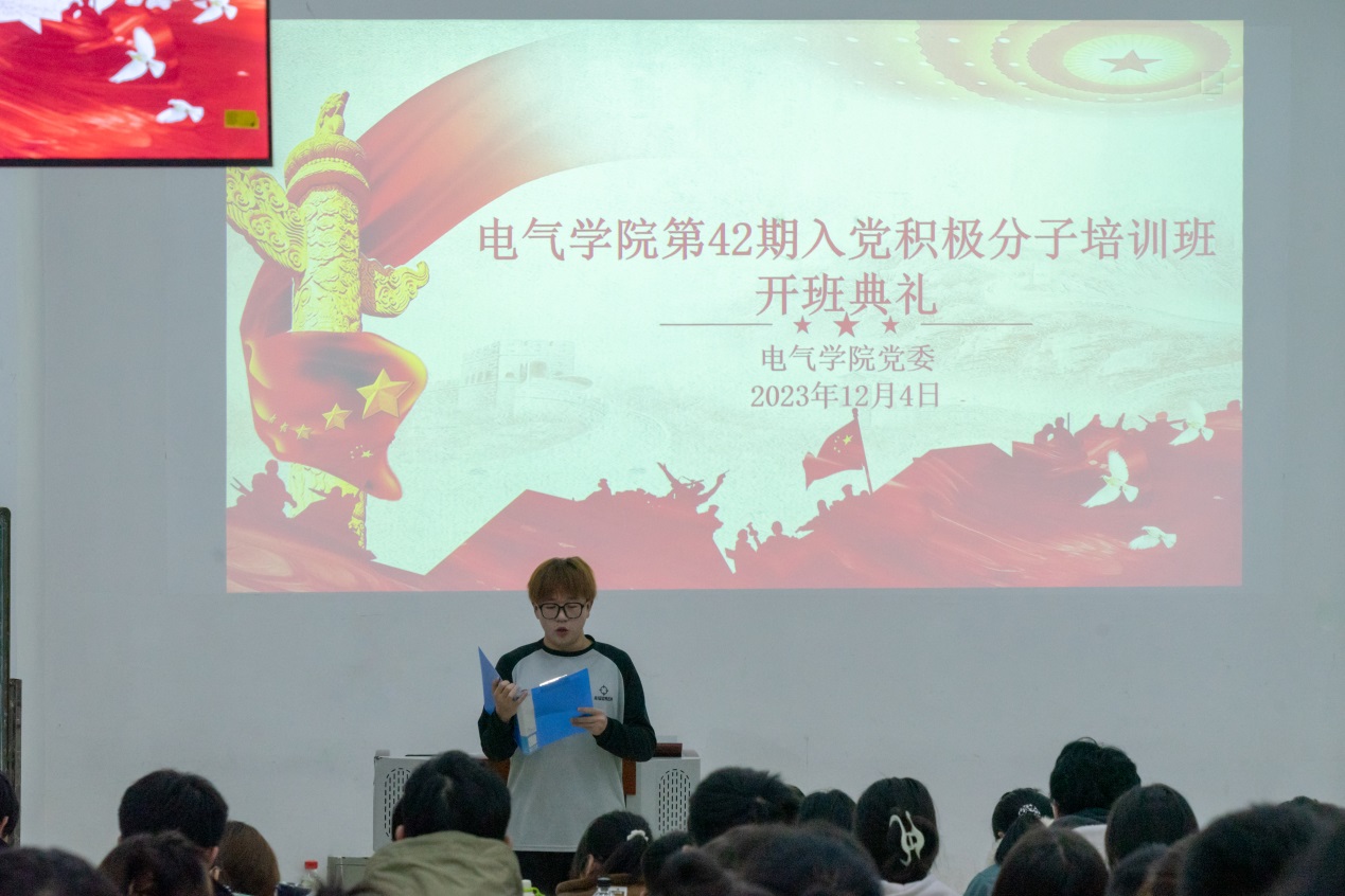 为了加强对入党积极分子的教育工作,深化党的基本理论、基本路线、基本纲领、基本经验教育,ok138cn太阳集团古天乐第42期入党积极分子培训班开班典礼于12月4日下午在A教116举行。ok138cn太阳集团古天乐党委书记、分党校校长陈国初出席开班仪式并作动员讲话,开班典礼由自动化2315班尹依鑫主持。