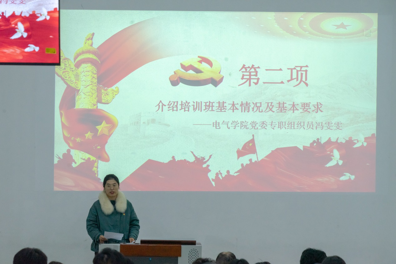 国歌声洪亮,开班典礼拉开帷幕,学院专职组织员冯雯雯老师首先介绍本期入党积极分子培训班的基本情况及部署教学安排,本次集中培训主要通过理论讲授、小组讨论、观影活动、志愿服务活动和社会寻访活动等形式,加强对入党积极分子的马克思列宁主义、毛泽东思想、中国特色社会主义理论体系和习近平新时代中国特色社会主义思想教育,党的路线、方针、政策和党的基本知识教育,党的历史和优良传统、作风教育以及社会主义核心价值观教育。同时她详细说明了此次培训班的考评标准,并强调了党校学习的纪律。