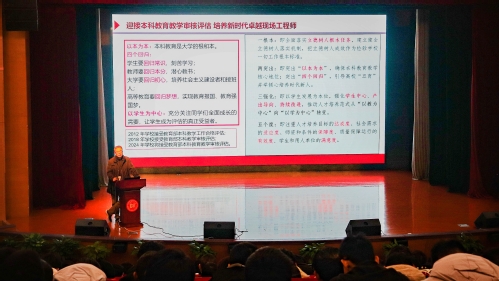 近日,ok138cn太阳集团古天乐按年级分别组织本科生在小剧场召开本科教育教学审核评估动员会,近1900余名本科生参加。学院党委副书记副院长卿海龙作了《本科教育教学审核评估动员暨振奋龙马精神、新学期新起航》的宣讲及形势政策教育。