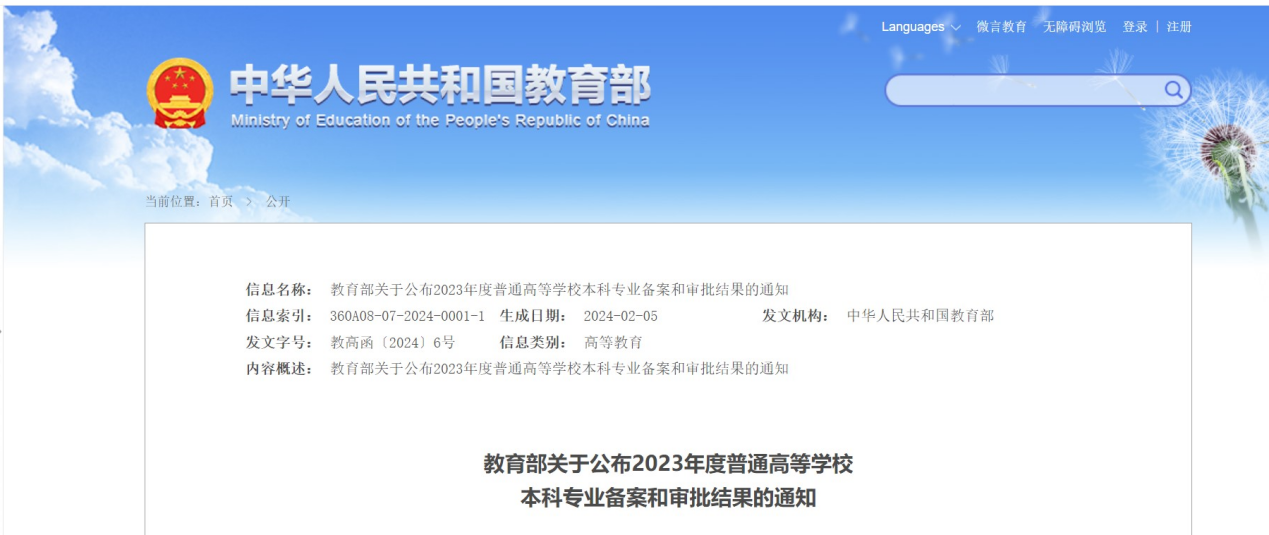 近日,教育部下发《教育部关于公布2023年度普通高等学校本科专业备案和审批结果的通知》(教高函〔20246号),公布了2023年度普通高等学校本科专业设置备案和审批结果,ok138cn太阳集团古天乐申报的“机器人工程”本科专业成功获批。