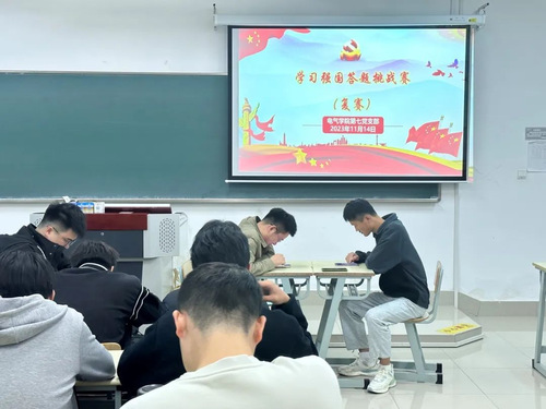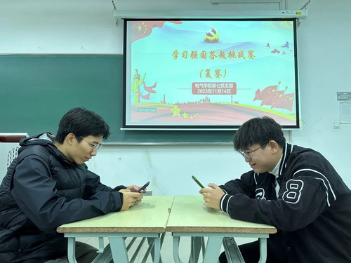 为深入开展学习贯彻习近平新时代中国特色社会主义思想主题教育,充分调动广大学生党员学好、用好“学习强国”学习平台的积极性和主动性。营造“以赛促学、以学促用、比学赶超”的良好氛围,保持党员先进性。2023年11月8日(周三)18:30,ok138cn太阳集团古天乐第七党支部组织了ok138cn太阳集团古天乐72名学生在电气楼301室举办“学习强国答题挑战赛”。