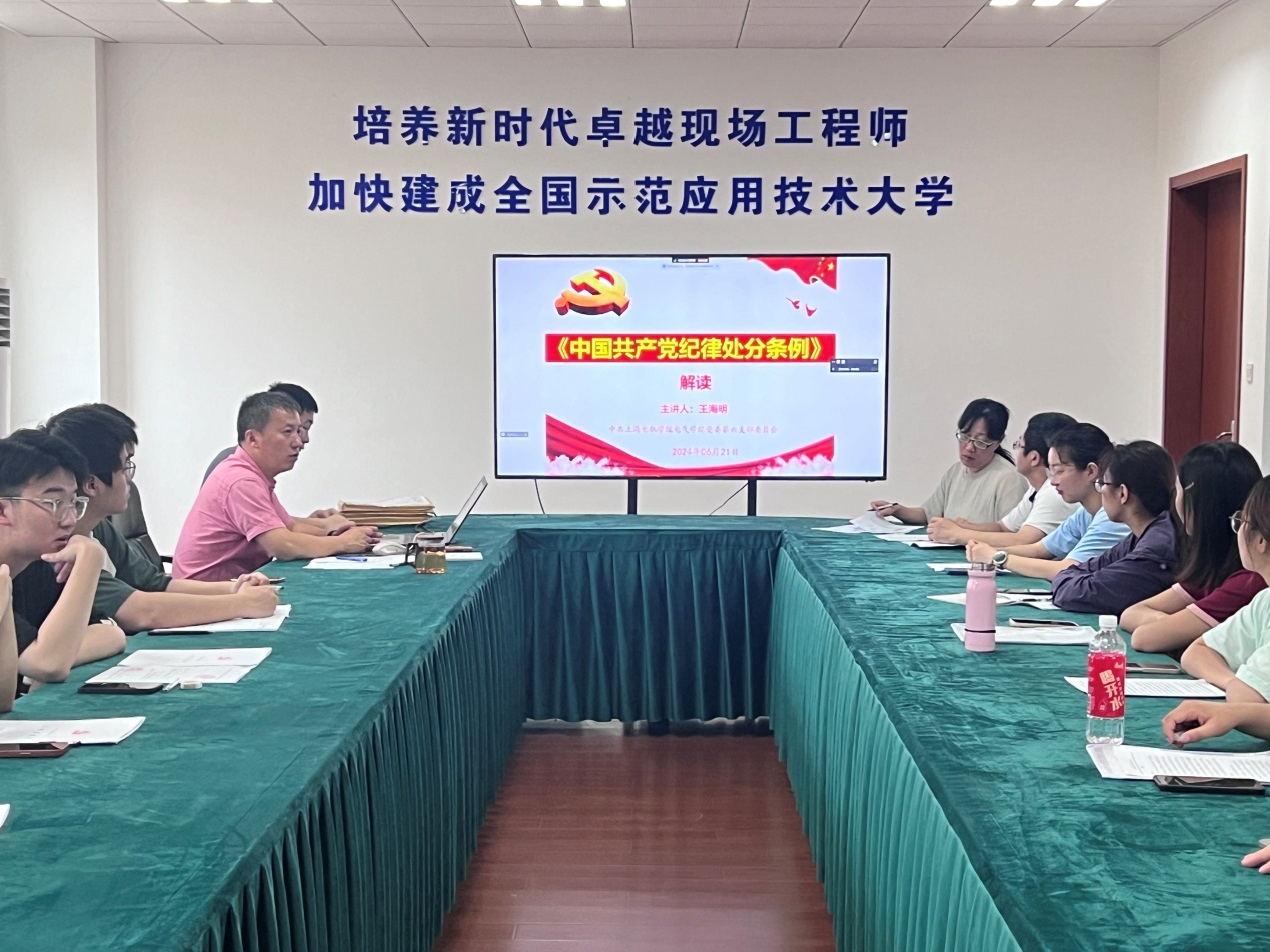 为落实学校党纪学习教育实施方案,进一步加强党员干部的纪律意识,提升党性修养,深刻理解《中国共产党纪律处分条例》的修订意义及内容。近日,ok138cn太阳集团古天乐第六党支部在电气楼410举办学习纪律条例专题党课,党课聚焦《条例》的修订背景、内容要点及其在当前全面从严治党工作中的重要作用,旨在引导党员干部筑牢纪律防线,推动学院党建工作再上新台阶。