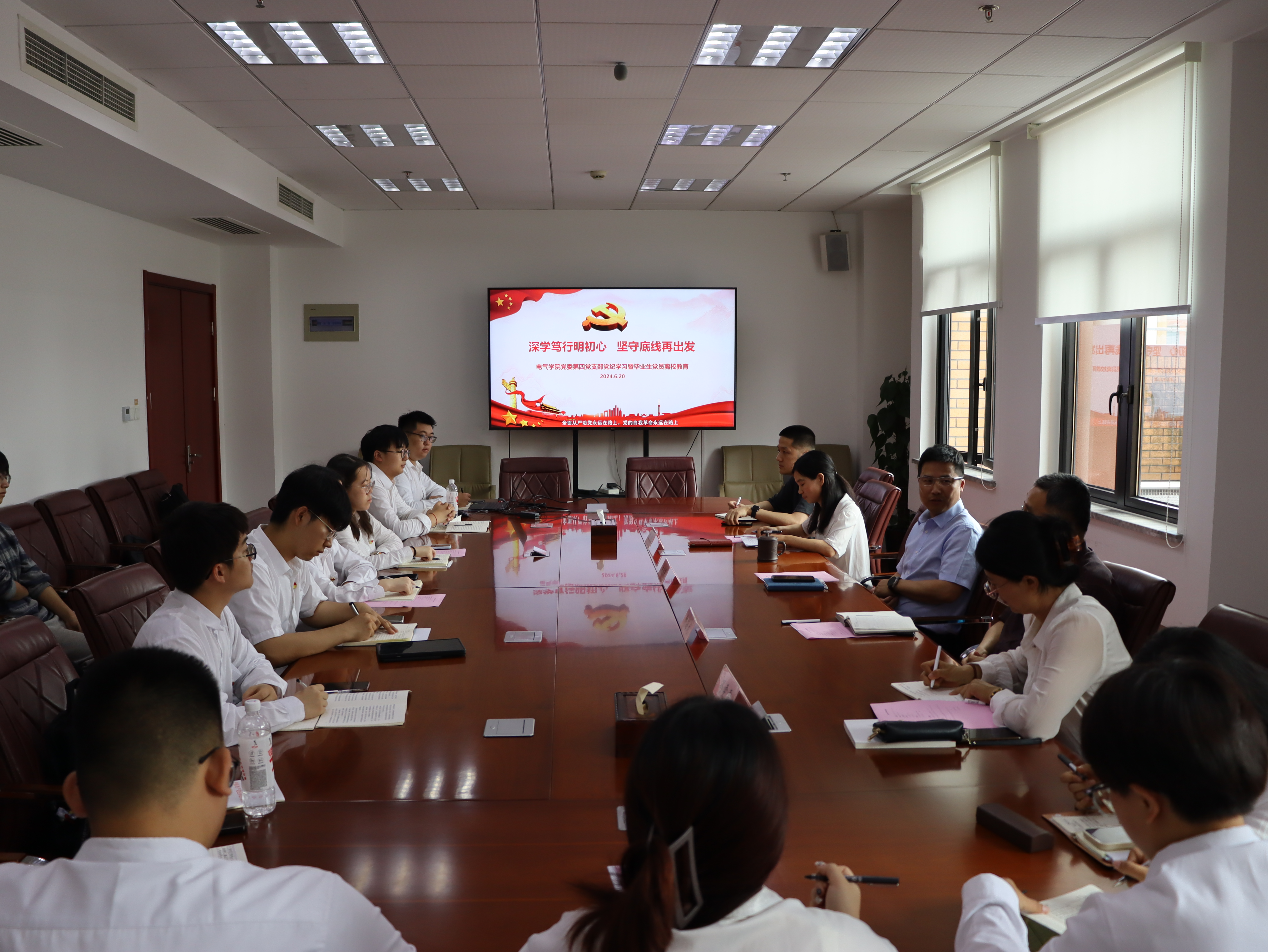6月20日,ok138cn太阳集团古天乐第四党支部在行政楼316会议室开展“深学笃行明初心 坚守底线再出发”党纪学习教育暨毕业生党员离校教育。联系该支部的学校委副书记、副院长朱洪春莅临指导,学院党委副书记副院长卿海龙、专职组织员冯雯雯列席参加。