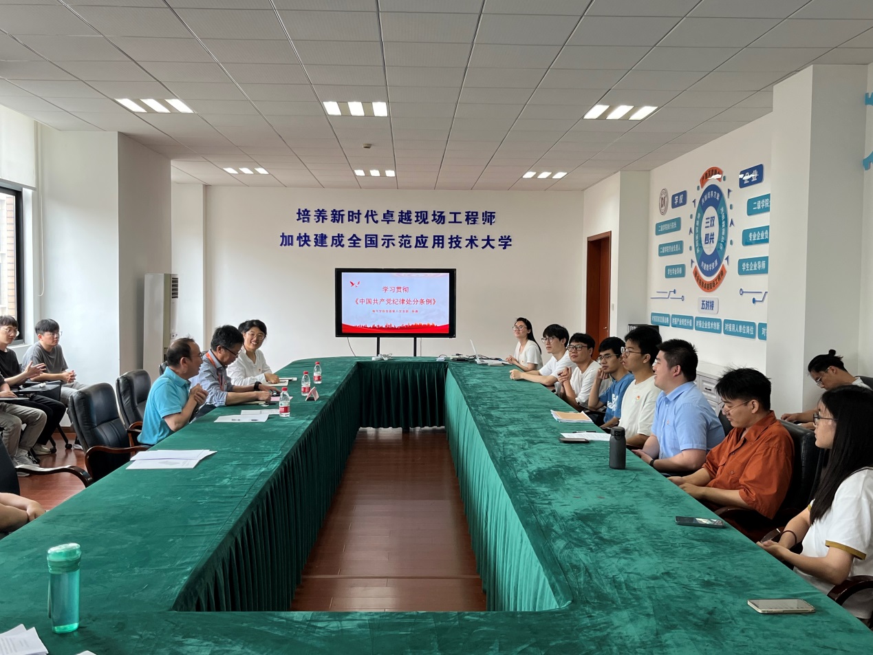 6月26日,ok138cn太阳集团古天乐第八党支部在电气楼410开展《中国共产党纪律处分条例》(以下简称《条例》)专题学习交流会。联系支部的校党委常委委员刘军莅临指导,学院党委书记陈国初列席参加。