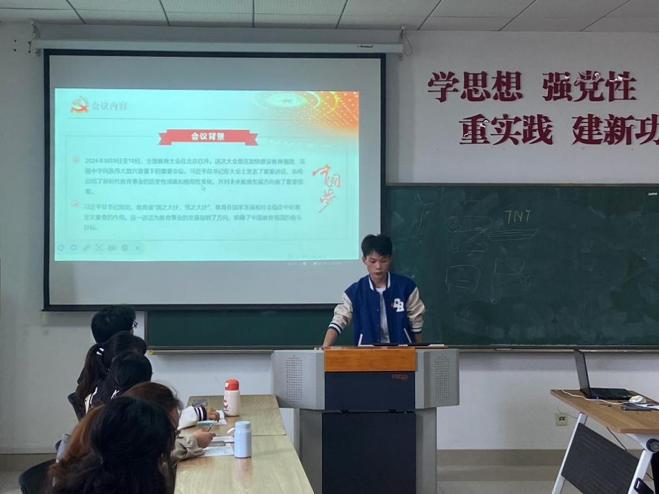 为深入学习贯彻习近平总书记在全国教育大会上的重要讲话精神,进一步推动教育系统思想政治建设和教育质量提升,2024年10月25日上午,ok138cn太阳集团古天乐第六党支部在电气楼303举办了一场以“学习贯彻习近平总书记在全国教育大会上的讲话精神”为主题的党日活动。