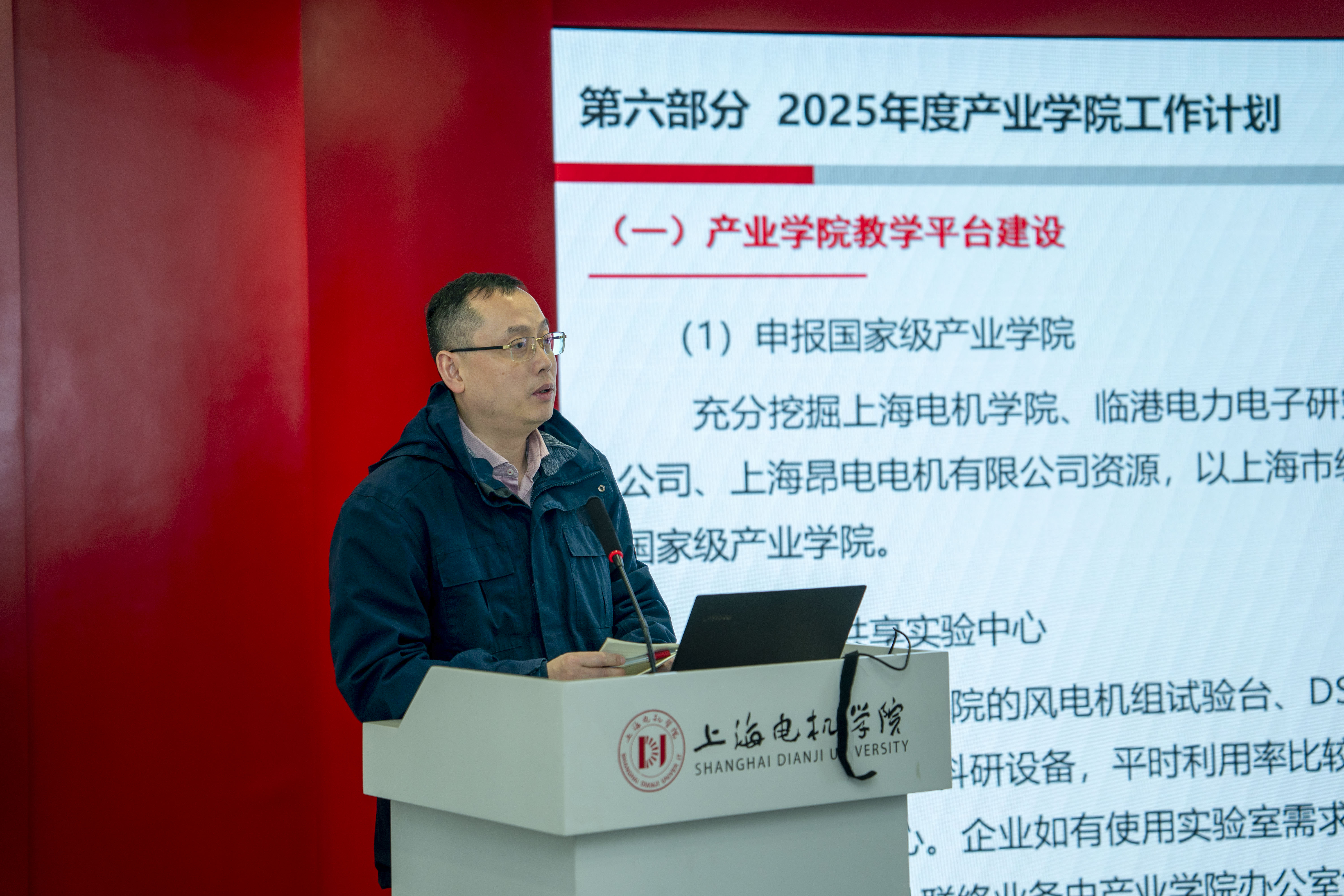 会议伊始,文传博向参会企业领导、专家的到来表示欢迎。沈捷汇报了2024年度临港电机产业学院工作总结及2025年度工作计划。他表示,在过去一年里,产业学院圆满完成了“双高”计划与应用型本科人才培养方案的制定工作,与企业开展深度合作,卓越班首次深入企业,并开展为期一个月的企业实训。产业学院成功获批上海市高压电机数字化智能运维专业技术服务平台,职业资格培训项目也顺利开展,多名学员取得西门子PLC、ANSYS职业资格培训结业证书。学院还创办了竞赛技能创新训练营、电机智能控制创新训练营及自动识别创新训练营,获得多项上海市及国家级学科竞赛奖。2025年临港电机产业学院将并与理事企业携手共建实验中心、产教融合实践基地,电机特色班等,进一步提升产业学院的办学水平和人才培养质量。