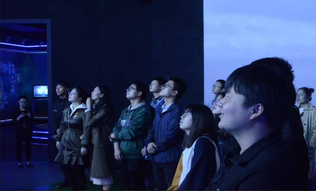 首先,在展示厅内,由南汇新城社区党校施斌老师为上《历史长河中的那抹红》的情景党课。通过讲解临港发展的历史,引申出临港在历史长河中的感人故事和抗战时期的红色革命精神,其中包括南汇县第一县委书记周大根的感人事迹,还原泥城暴动建立中农红军22军,成立了南汇县保卫团第二中队的历史故事,打响浦东抗日第一枪的汇角战役等红色革命故事。通过施老师的生动讲解,带领同学们回顾了临港发展的昨天,同学们不禁感慨这片土地上孕育了这么多无怨无悔,一心为国的志士仁人。